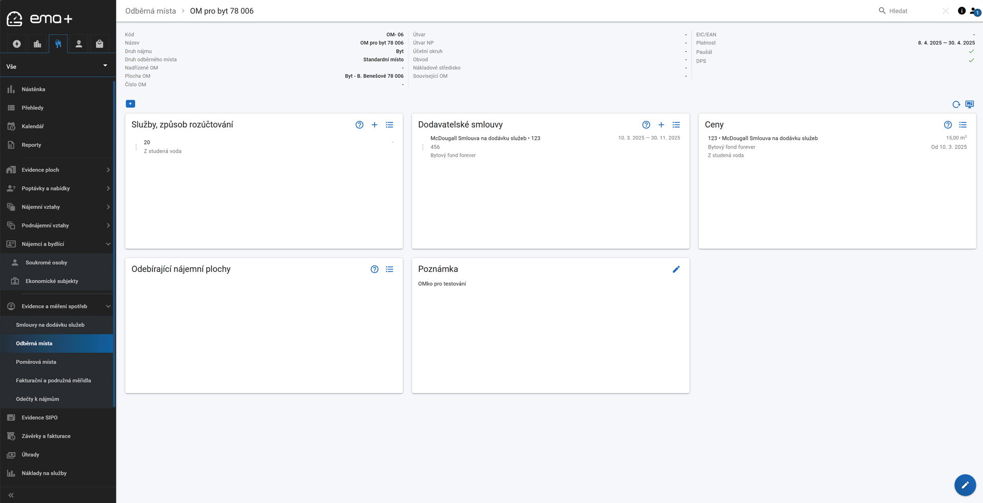 Umožňuje evidenci a správu smluv na dodávku služeb, odběrných a poměrových míst aj.