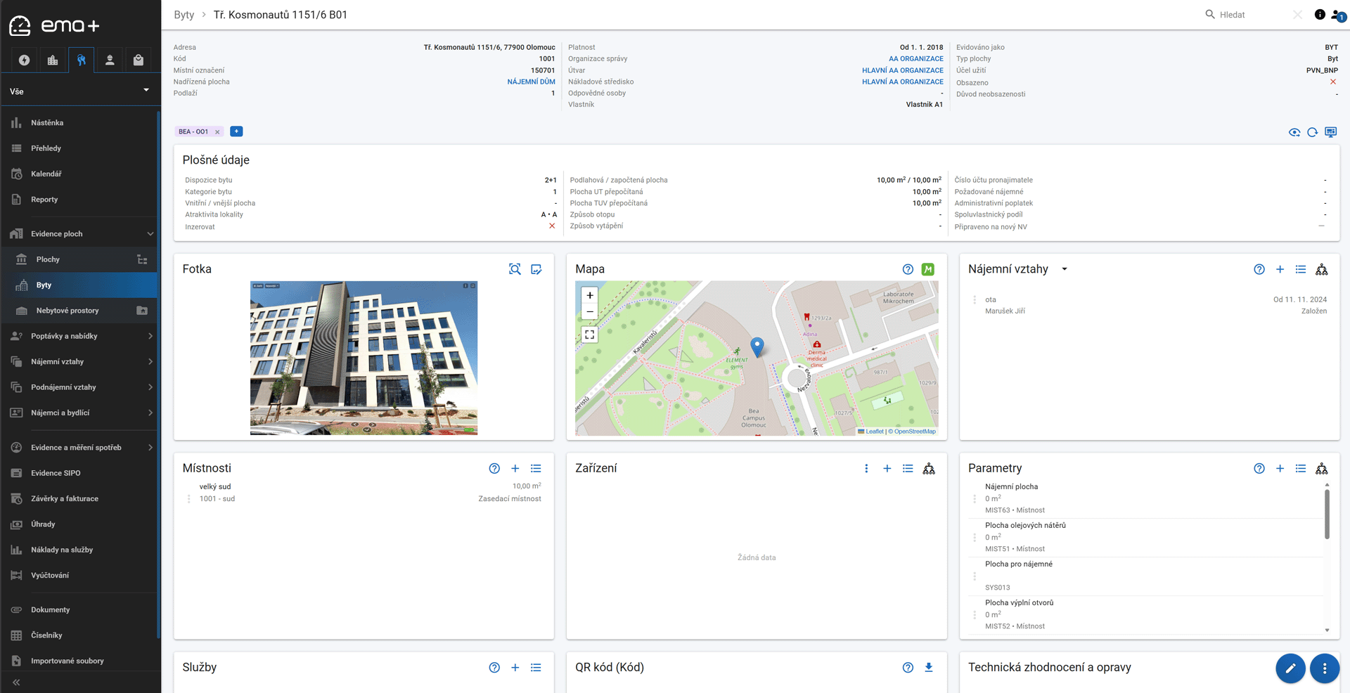 Evidence a správa ploch z pohledu řízení bytových nájmů.