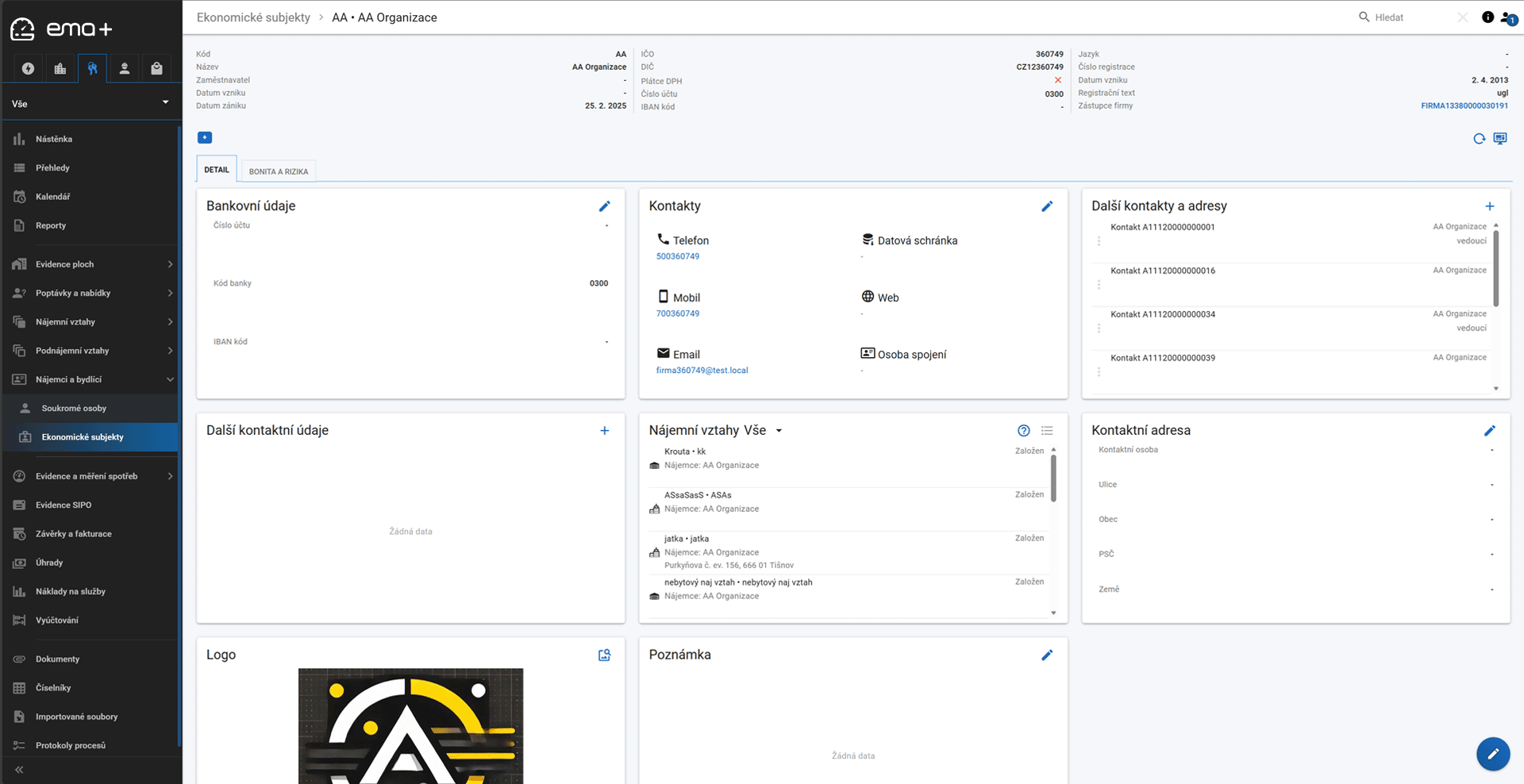 Umožňuje evidenci a správu soukromých osob a ekonomických subjektů, které se následně přiřazují k nájemním vztahům.
