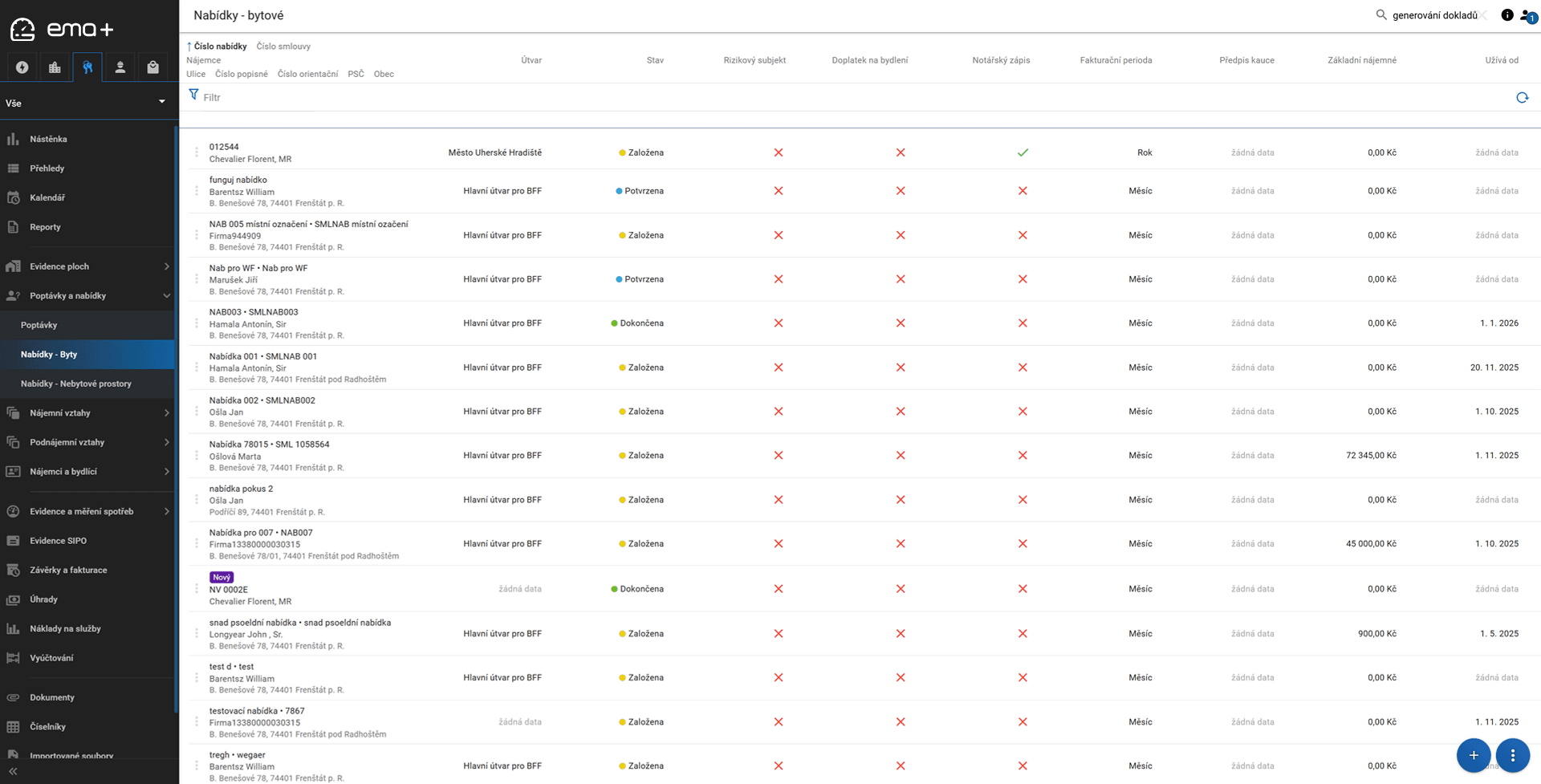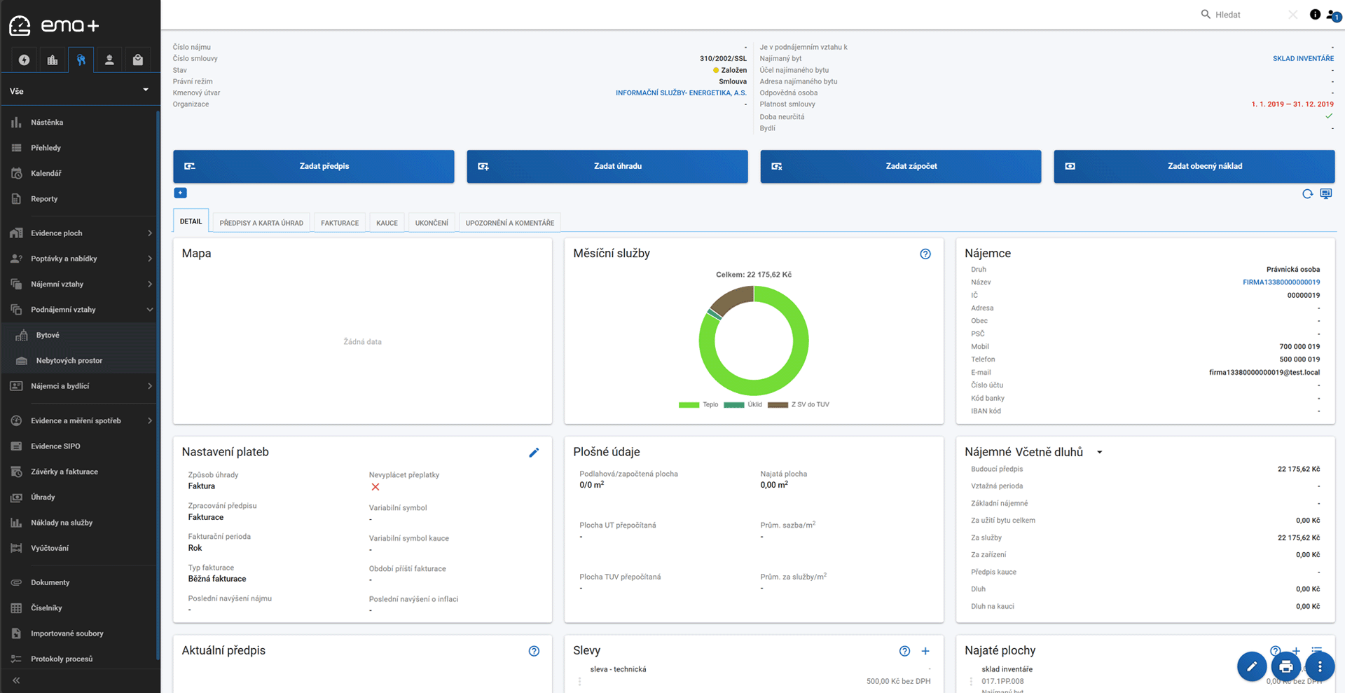 Jádro agendy řízení bytových i nebytových nájemních vztahů.