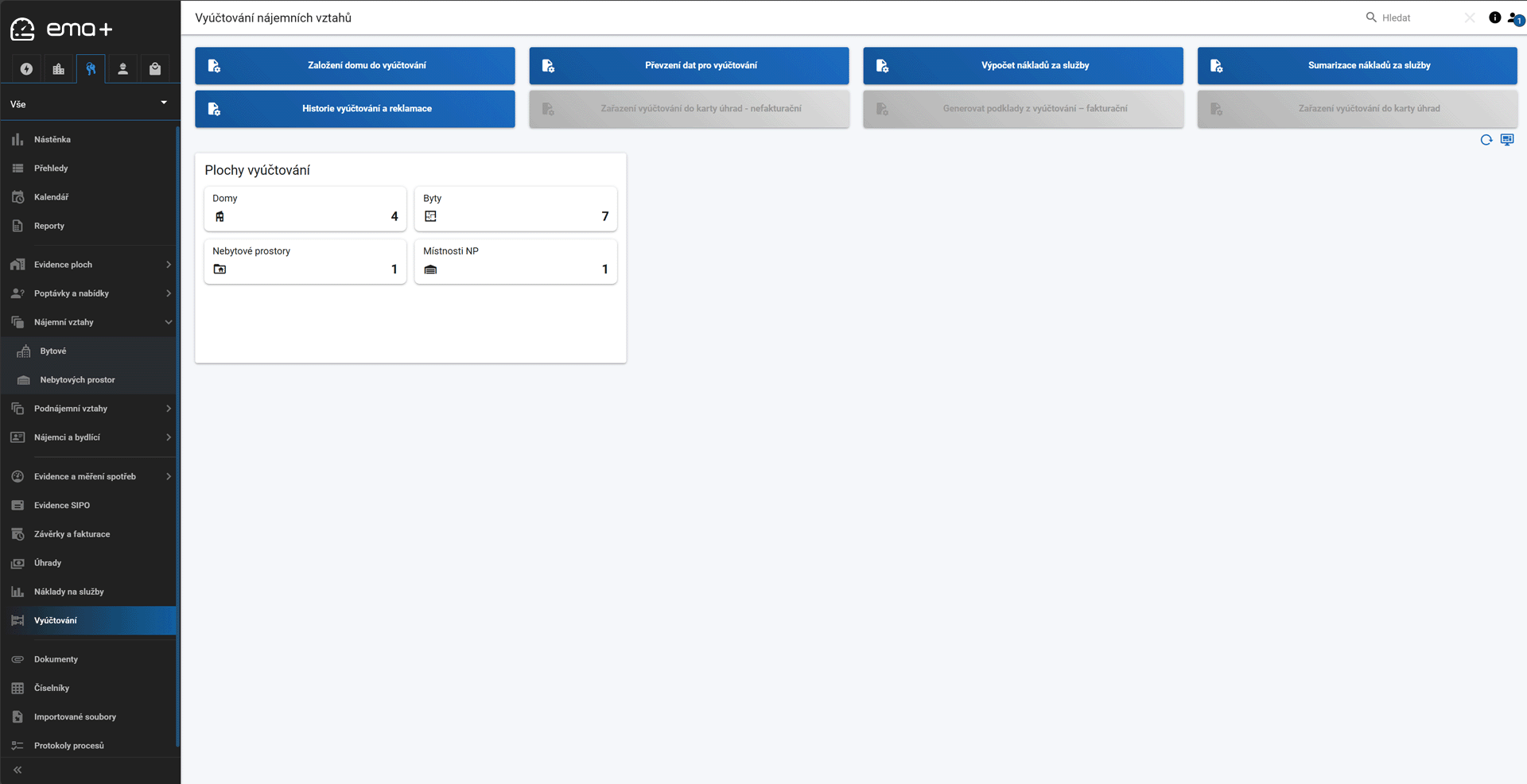Tvorba ročních a mimořádných vyúčtování, podpora tisku vyúčtování nákladů na služby.